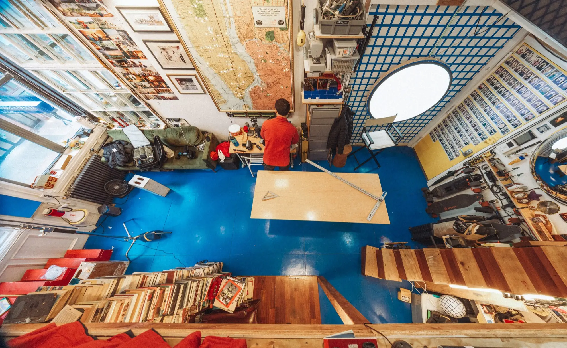Step into his space and you’ll find paper maps lit from within, custom-built reading windows stacked with idea-fuel, and micro-sets waiting for a scene to unfold. It’s part workshop, part library, part film set - and entirely imagined, designed, and constructed by Jordan himself.